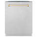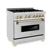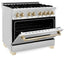 ZLINE Autograph Edition 30", 36", & 48" Stainless Steel 4-Piece Kitchen Package with Polished Gold Accents—Dual Fuel Range, Wall Mount Range Hood, Dishwasher, and Refrigerator