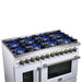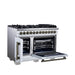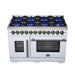 Forno Capriasca 48 Inch Freestanding French Door Dual Fuel Range in White with Antique Brass Accessories, 8 Burners, True Convection Oven