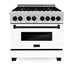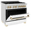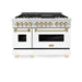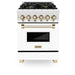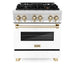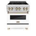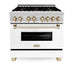 ZLINE Autograph Edition 24", 30", 36", 48", & 60" Legacy Dual Fuel Range with White Matte Doors—Champagne Bronze, Polished Gold, and Matte Black Accents RAZ-WM Series.