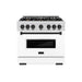 ZLINE Autograph Edition Classic Dual Fuel Ranges in Stainless Steel White Matte Door with Matte Black Accents