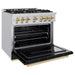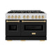 ZLINE Autograph Edition Classic Dual Fuel Ranges with Black Matte Doors and Polished Gold Accents