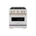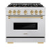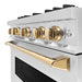 ZLINE Autograph Edition Classic Gas Range with Convection Gas Oven in Satin Stainless Steel and Polished Gold Accents