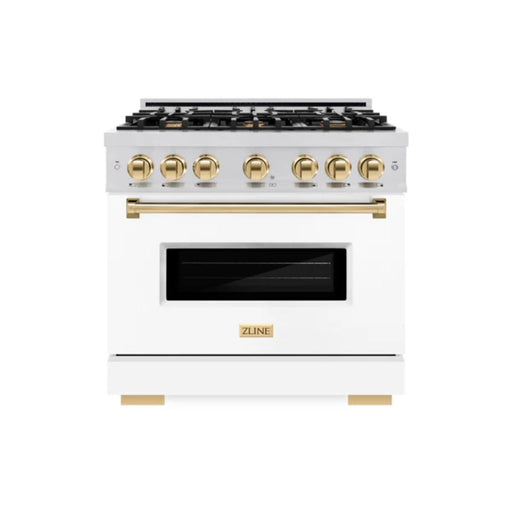 View full detailsZLINE Autograph Edition Classic Gas Range with Convection Gas Oven in Stainless Steel with White Matte Door and Polished Gold Accents