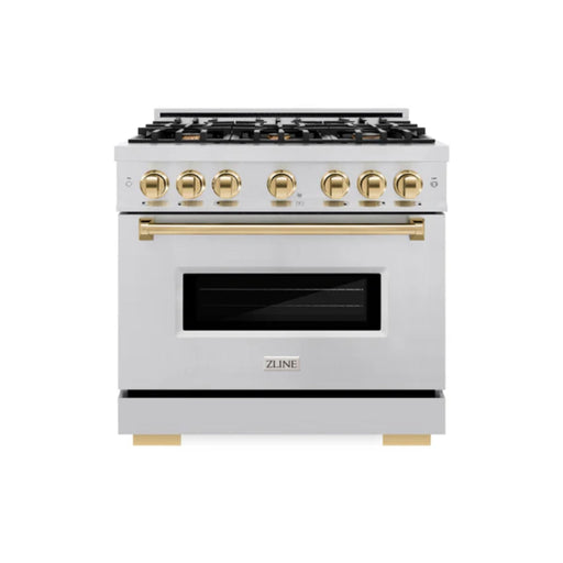 View full detailsZLINE Autograph Edition Classic Dual Fuel Ranges Burner Gas Cooktop and Electric Convection Oven in Stainless Steel with Polished Gold Accents
