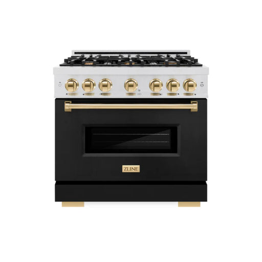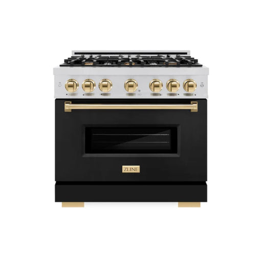 ZLINE Autograph Edition Classic Dual Fuel Ranges with Black Matte Doors and Polished Gold Accents
