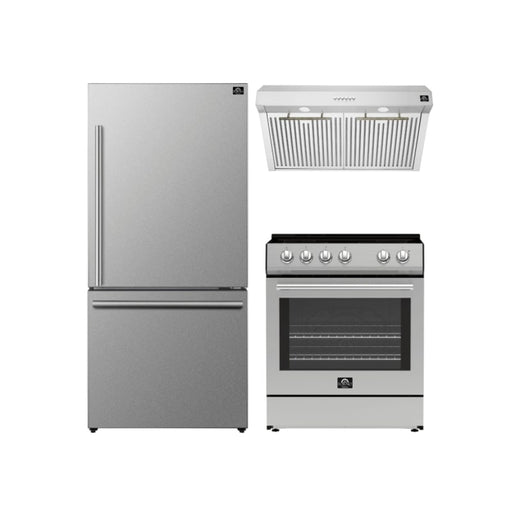 View full detailsFORNO Premium 3-Piece Kitchen Bundle - Leonardo Espresso 30" Stainless Steel Range, 31" Stainless Steel Bottom Freezer Refrigerator, 30" Stainless Steel Under Cabinet Range Hood - FBDL-001-01US