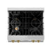 Designed for slide-in installation under hoods, front knob controls and auto-reignition ensure reliable operation while the Champagne Bronze Autograph hardware adds warm metallic detail. The stainless steel frame withstands rigorous use while maintaining its pristine appearance. Purchasing from LuxHome Appliances provides expert coordination with matching ZLINE appliances and professional delivery support.