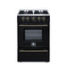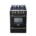 Forno Breno 24 Inch Freestanding Gas Range in Black with Antique Brass, Compact Design