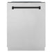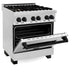 ZLINE Autograph Edition 30", 36", & 48" Stainless Steel 4-Piece Kitchen Package with Matte Black Accents—Dual Fuel Range, Wall Mount Range Hood, Dishwasher, and Refrigerator.