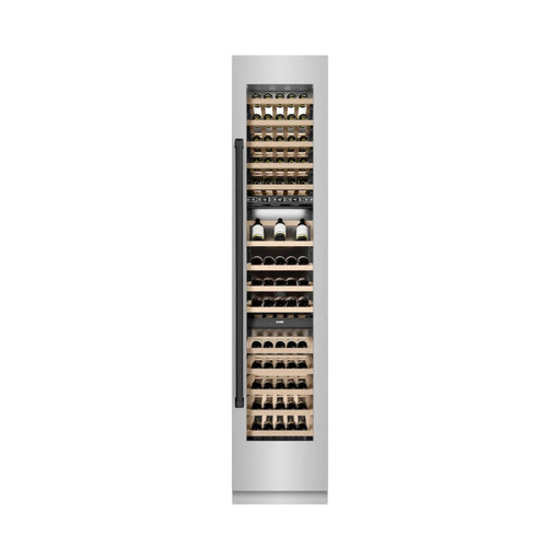 View full detailsZLINE Autograph Edition 18-Inch 9.0 Cu. Ft. Triple Zone Panel Ready Right Hinge Column Wine Cooler in Stainless Steel with Matte Black Accents