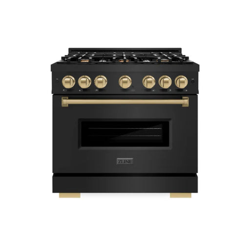 View full detailsZLINE Autograph Edition Classic Gas Range with Convection Gas Oven in Black Stainless Steel in Champagne Bronze Accents