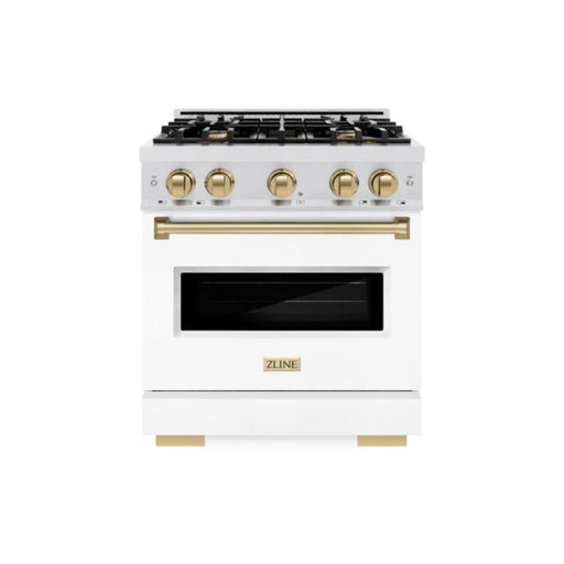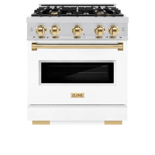 View full detailsZLINE Autograph Edition Classic Dual Fuel Ranges in White Matte with Polished Gold Accents