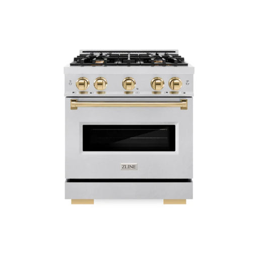 View full detailsZLINE Autograph Edition Classic Gas Range with Convection Gas Oven in Satin Stainless Steel and Polished Gold Accents