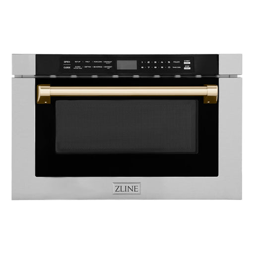 View full detailsZLINE 24" Autograph Edition Built-in Microwave Drawer with a Traditional Handle in Stainless Steel and Polished Gold Accents 1.2 cu. ft.