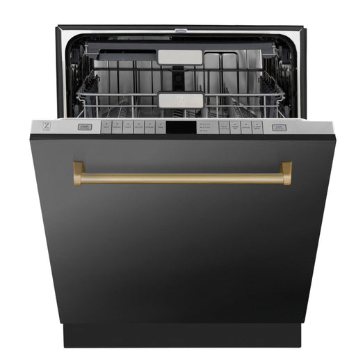 View full detailsZLINE 24" Autograph Edition 3rd Rack Top Touch Control Tall Tub Dishwasher in Black Stainless Steel with Champagne Bronze Handle
