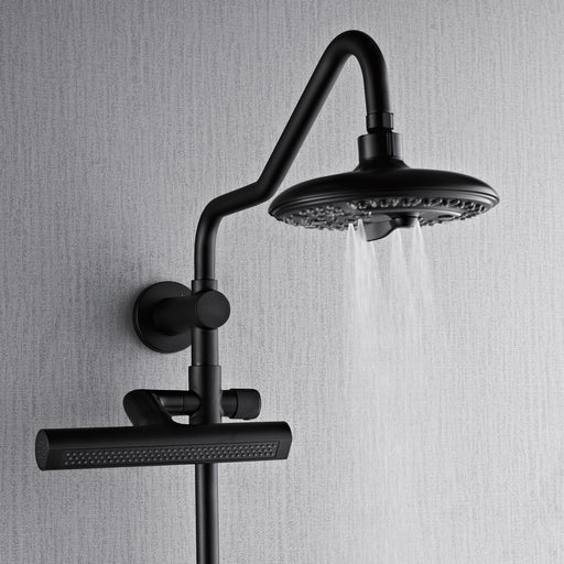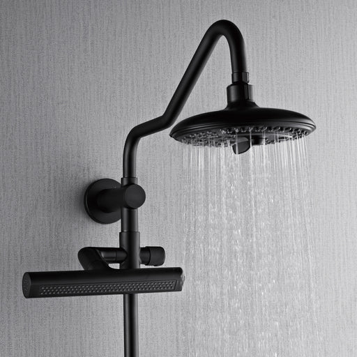 Forno Acqua AcquaFALL Shower, Matte Black Finish, Overhead Rainfall Shower, 7 Way Diverter, Handheld Shower Head, Body Jets, 1.8 GPM Flow Rate