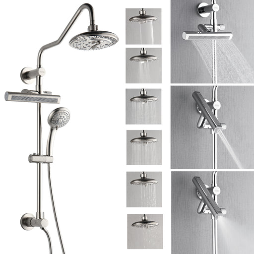 Forno Acqua AcquaFALL Shower, Brushed Nickel Finish, Overhead Rainfall Shower, 7 Way Diverter, Handheld Shower Head, Body Jets, 2.5 GPM Flow Rate