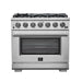 Dimensions: Galiano 48" Stainless Steel Range: 48W x 28D x 38H Forno Moena 36" French Door Refrigerator with Decorative Grill: 35.8W x 28.3D x 69.9H